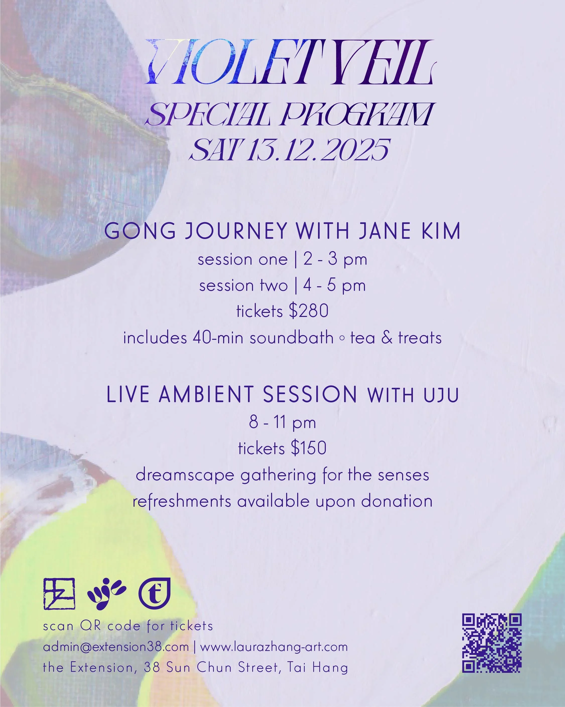 as part of the special program at artist laura zhang’s violet veil exhibition, UJU invites you for a dreamscape gathering for the senses.